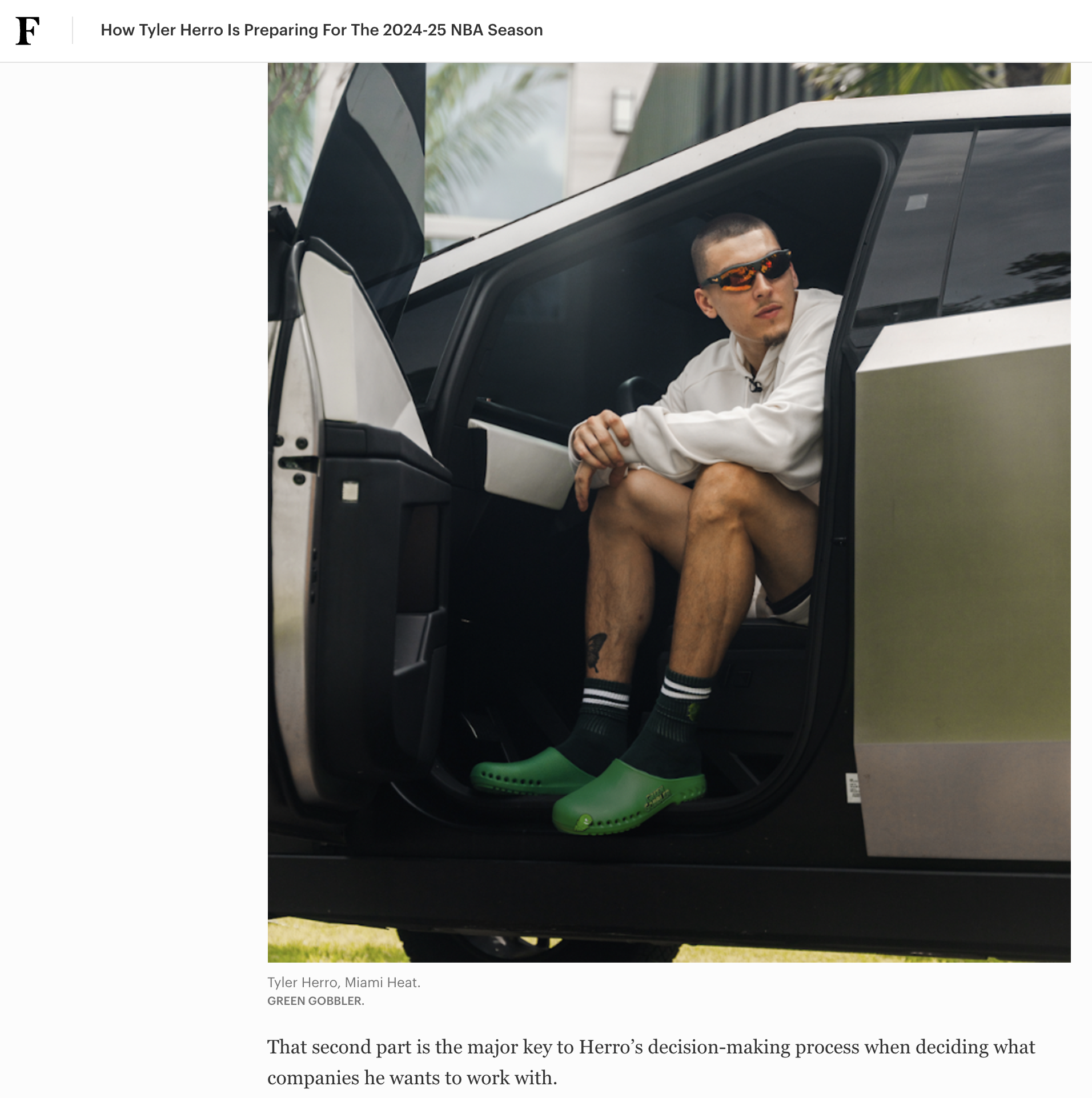 Tyler Herro featured in clogs in Forbes.